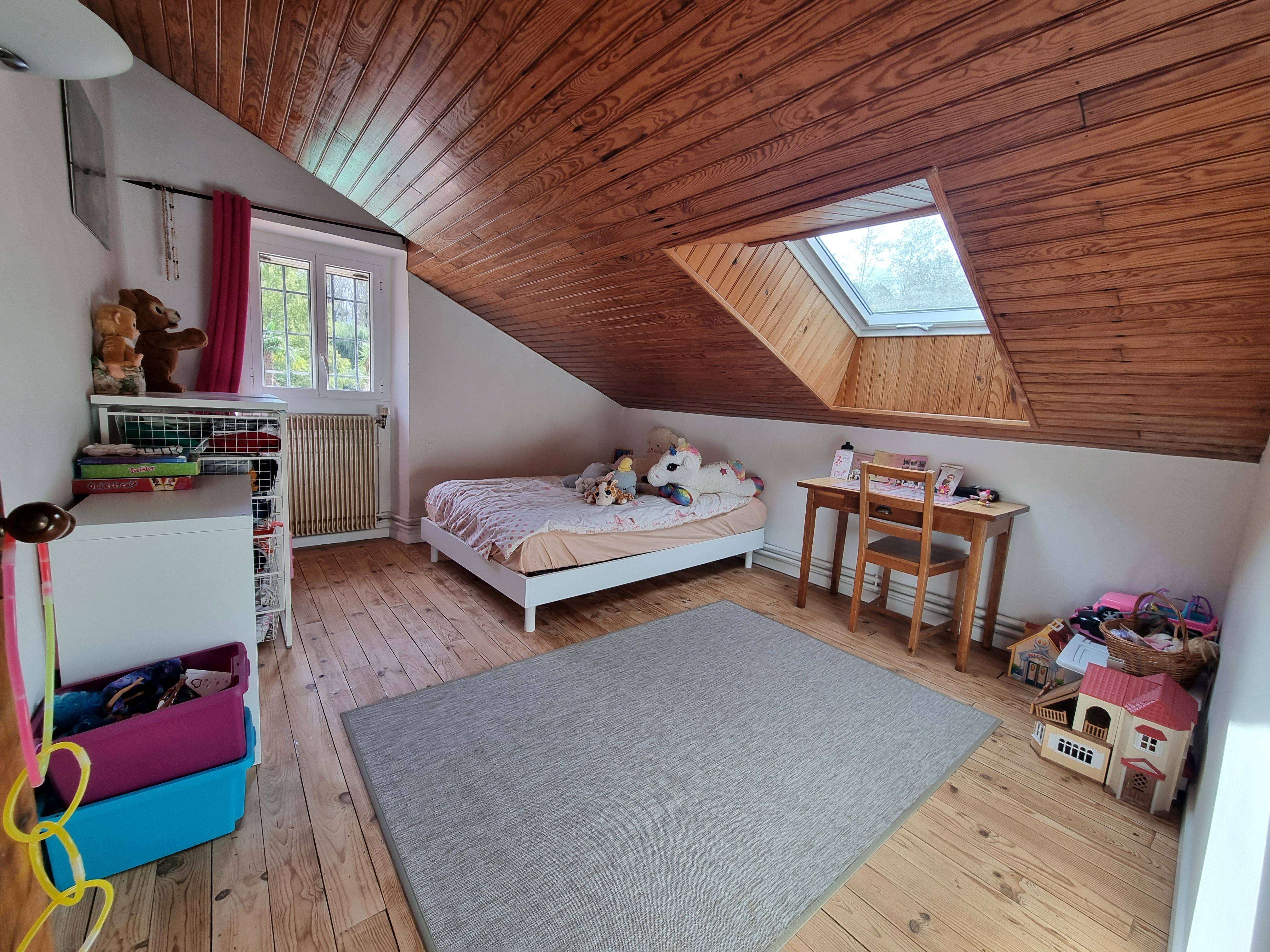Propriété avec beau terrain arboré, la maison ouverte sur la nature comprend des pièces de vie spacieuses et confortables.